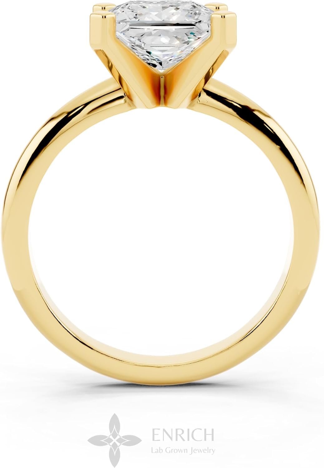 Celebrate forever with this 1 to 3 carat Princess Cut solitaire lab grown diamond engagement ring. The brilliant center stone is securely set in a classic prong setting, offering stunning elegance and sparkle. Crafted in 14K white, yellow or rose gold plated 925 sterling silver with a comfort-fit design, this ring is a timeless symbol of love and modern sustainability. The IGI Certified lab grown diamond features a total carat weight of 1 to 3 cttw, with a Princess and Round Cut, F-G color, and VS clarity. Crafted with eco-conscious lab grown diamonds, this engagement ring offers the same beauty, brilliance, and durability as mined diamonds, with a significantly reduced environmental footprint. You can personalize your ring with your choice of metal and size, creating a truly unique piece that’s perfect for any occasion. The solitaire design is made with high-quality 925 sterling silver, ensuring lasting shine and durability. Nickel-free and hypoallergenic, it is ideal for sensitive skin. Whether worn as an engagement ring, wedding band, promise ring, or anniversary gift, this ring combines elegance, comfort, and quality. Celebrate life’s special moments with ENRICH’s exquisite jewelry, designed for occasions like Valentine’s Day, anniversaries, birthdays, weddings, engagements, Mother’s Day, Christmas, and more. It’s the perfect gift for mom, wife, daughter, fiancée, or girlfriend, and each piece arrives beautifully packaged and ready to impress. At ENRICH, every piece of fine jewelry undergoes thorough inspection before packaging to ensure the highest quality standards. Each item is beautifully packaged in a stylish gift box, making it an ideal choice for a special and unforgettable gift.