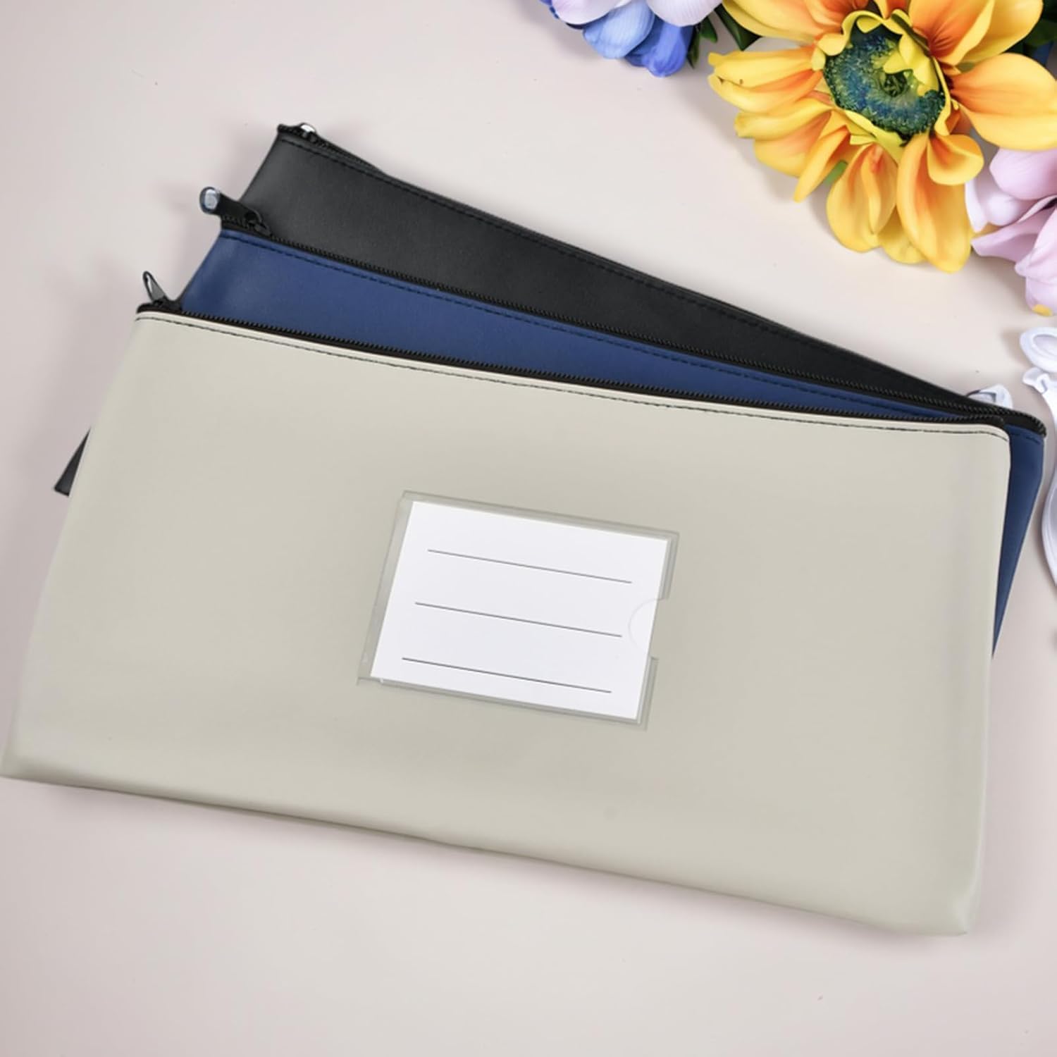 Specifications: Dimensions: 28 x 15 cm. Color Combinations: Black x3, Black + Blue + Light Grey, Black + Blue + Red Material: PU leather Package Includes: 3 x Banknote Bags