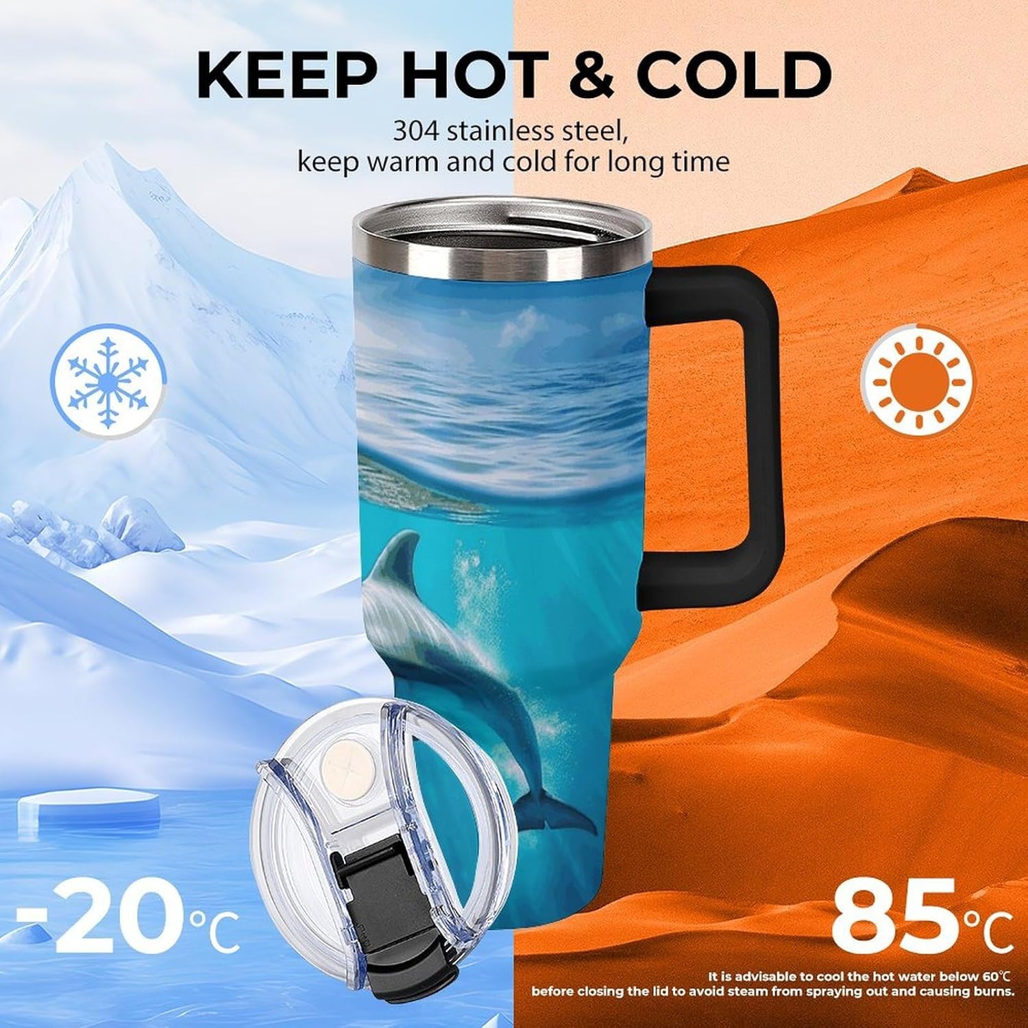 40 oz Tumbler: Keep Your Drinks Hot or Cold for Longer Perfect for long trips or days at the beach, this 40 oz thermal tumbler keeps your drinks at the perfect temperature for hours. The Tumbler is made from 304 stainless steel and fits standard cupholders, and with a variety of pattern options, you can get an Emotional Support Water Bottle. Its double-wall stainless steel design ensures optimal insulation, while the leak-proof lid prevents spills. Plus, its 180-degree rotating handle adds convenience and practicality to your daily adventures. Capacity: 40 oz (approx. 1.2 liters) Double-wall insulation Leak-proof lid 180-degree rotating handle Enjoy your favorite drinks anytime, anywhere with this versatile and practical thermal tumbler! Tumbler is double walled and vacuum insulated to keep your drink hot or cold for hours. The cup is outfitted with an ergonomic handle, that is aesthetically designed for comfort. It comes with a straw lid and two straws so you can enjoy your favorite beverage on the go.