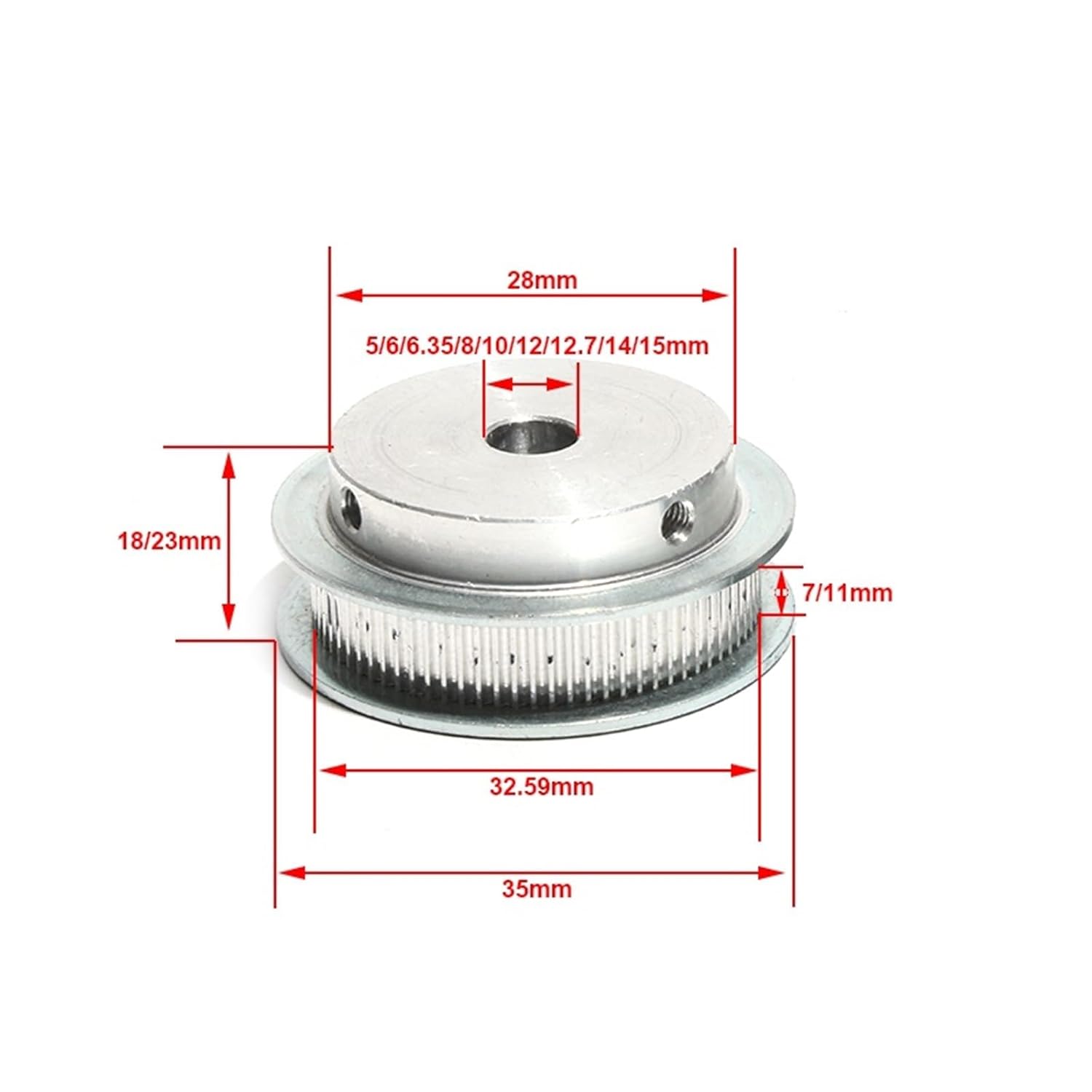 PulleysBelt Pulley S2M 52Teeth 5/8/10/15mm Bore S2M-52T Toothed Pulley 7mm/11mm Belt Width Aluminum Alloy Transmission PulleyName:S2M PulleySize:S2M-52TType:BF typeMaterial:Aluminum AlloyWidth:7mm/11mmTeeth Number:52TeethTeeth Pitch:2mmPackage:1pc PulleyRemark:*Inner Bore Dia. allowable tolerance:plus(0~0.03mm)*Total Height/Flange Dia./Teeth Outside Dia./Screw size allow little tolerance between each different batch.==========is_customized : YESNumber of Teeth : 52Model Number : S2M TypeMaterial : Aluminum AlloyType : Certification : noneOrigin : Mainland Belt Width : 7mm/11mm belt widthInner bore : 5/6/6.35/8/10/12/12.7/14/15mmName : PulleySize : S2M-52TType : BF typePackage : 1pc S2M Pulley