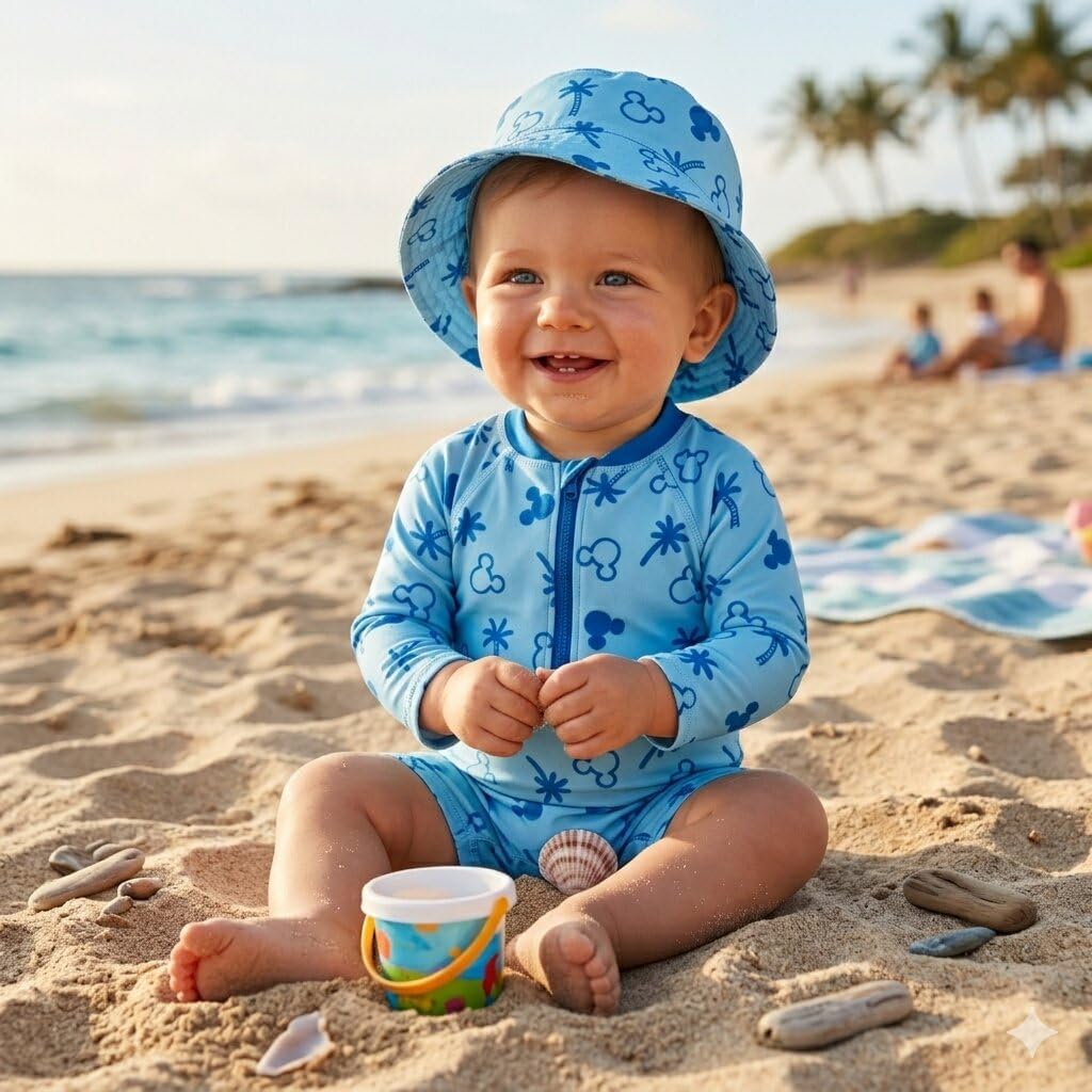 Keep your little one safe from the sun in style with this Disney Mickey Mouse Baby Sunsuit and Bucket Sun Hat Swim Set, offering UPF 50+ protection for newborns to infants. Whether splashing in the pool or playing at the beach, this adorable set featuring everyone's favorite mouse is a must-have for sunny days. Get your hands on this cute and practical ensemble that will keep your baby protected and looking cute all summer long.