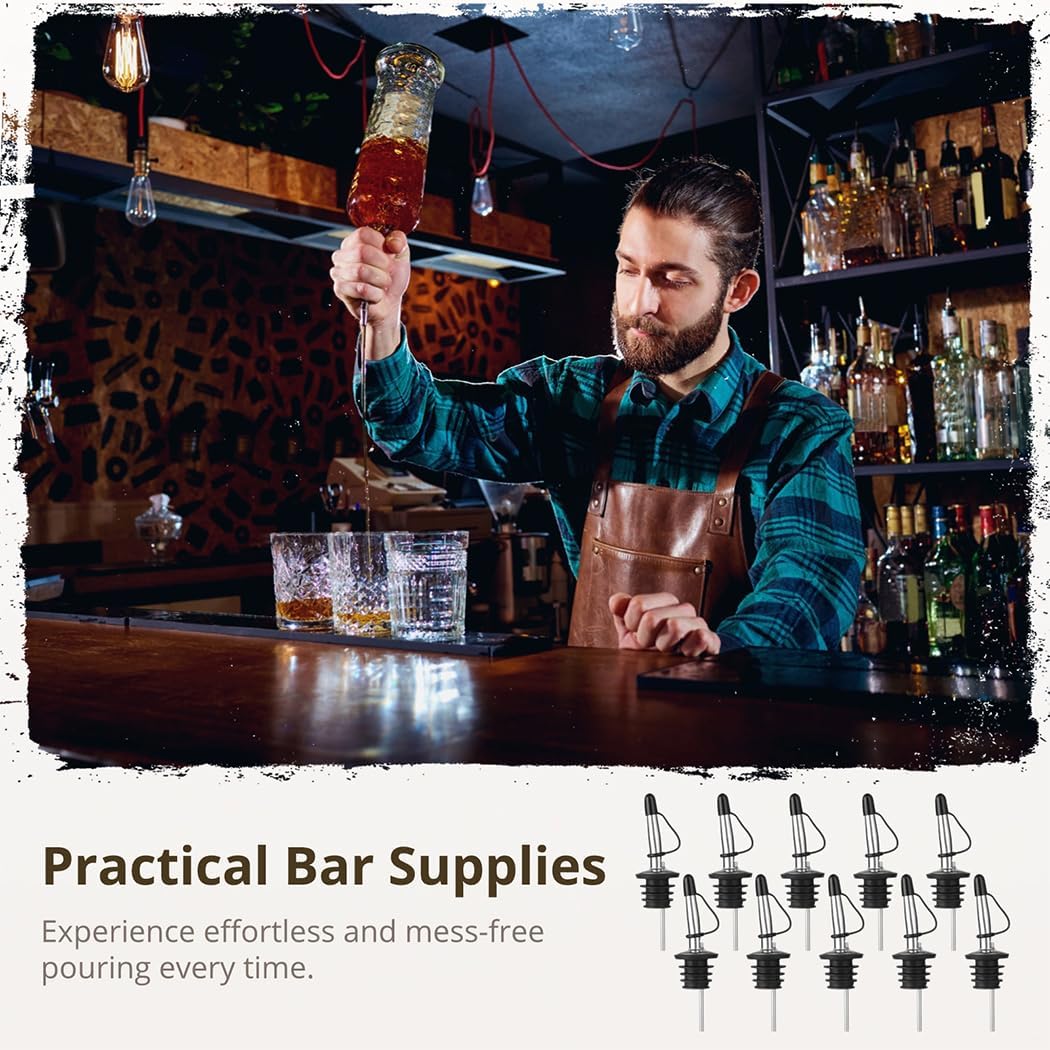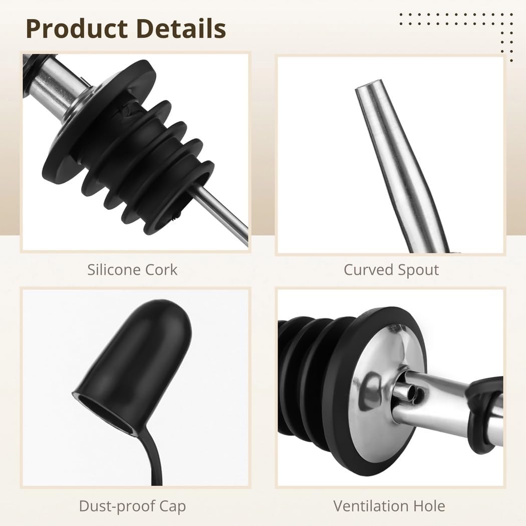 Color: black Material: stainless steel, rubber Size: 4.3" x 1.18" Package Includes: 120 pcs * Bottle Pourers Note: - Please refer to the measurement. Tiny measuring error is allowable in normal range. - There might be a little color difference due to the monitor, camera or other factors, please refer to the physical item.