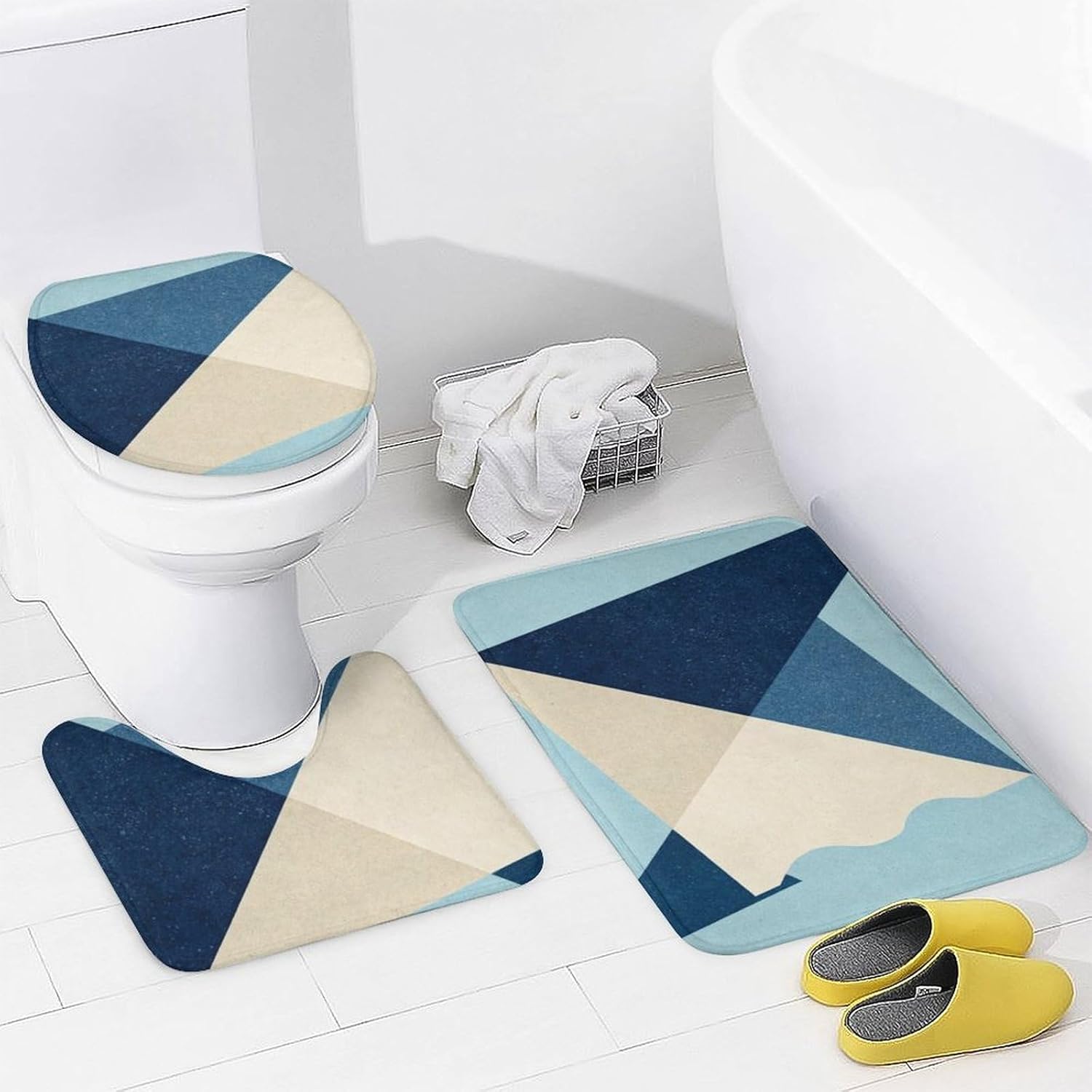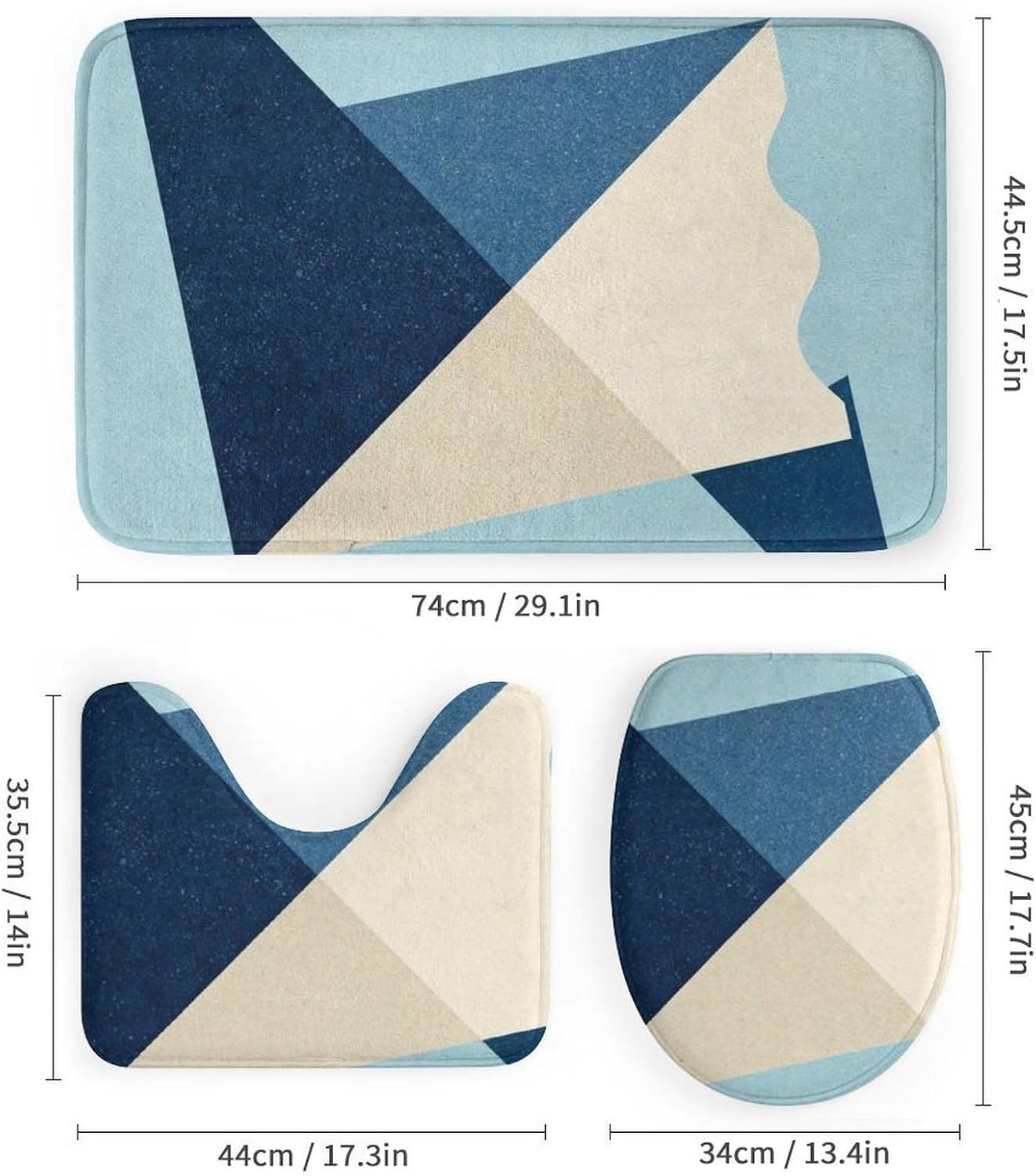 Transform Your Bathroom with Premium 4-Piece Set This complete bathroom ensemble includes: waterproof shower curtain (183x183cm), plush bath mat, U-shaped contour mat, and toilet lid cover. Shower Curtain: 100% polyester Oxford fabric with waterproof coating prevents leaks and protects floors. Non-Slip Bath Mats: Coral fleece surface offers ultra-soft absorbency; anti-skid rubber backing ensures stability on wet surfaces. Optimized Design for Practical Use Perfect Fit: U-shaped mat contours around toilet bases;non slip toilet lid cover stays securely in place. Thickened Comfort: 12mm coral fleece bathroom rug set provides cushioning underfoot and quick drying. Effortless Maintenance Ideal for: Home & Rental Properties: Master bathrooms, guest suites, vacation homes. Adds luxury bathroom rug set elegance to any space. Gift Scenarios: Ready-to-gift packaging makes it a top bathroom gift set for women, housewarmings, or weddings. bathroom mat set with curtain,Geometry complete bathroom ensemble, water resistant bath set, coral fleece bathroom rug set,Geometry non slip toilet lid cover, bathroom accessories 4 piece set, coordinated bathroom decor, machine washable bathroom set, bathroom gift set for women,Geometry bathroom set with U-shaped mat, ecological bathroom set, modern bathroom accessories set, luxury bathroom rug set, spa style bathroom set