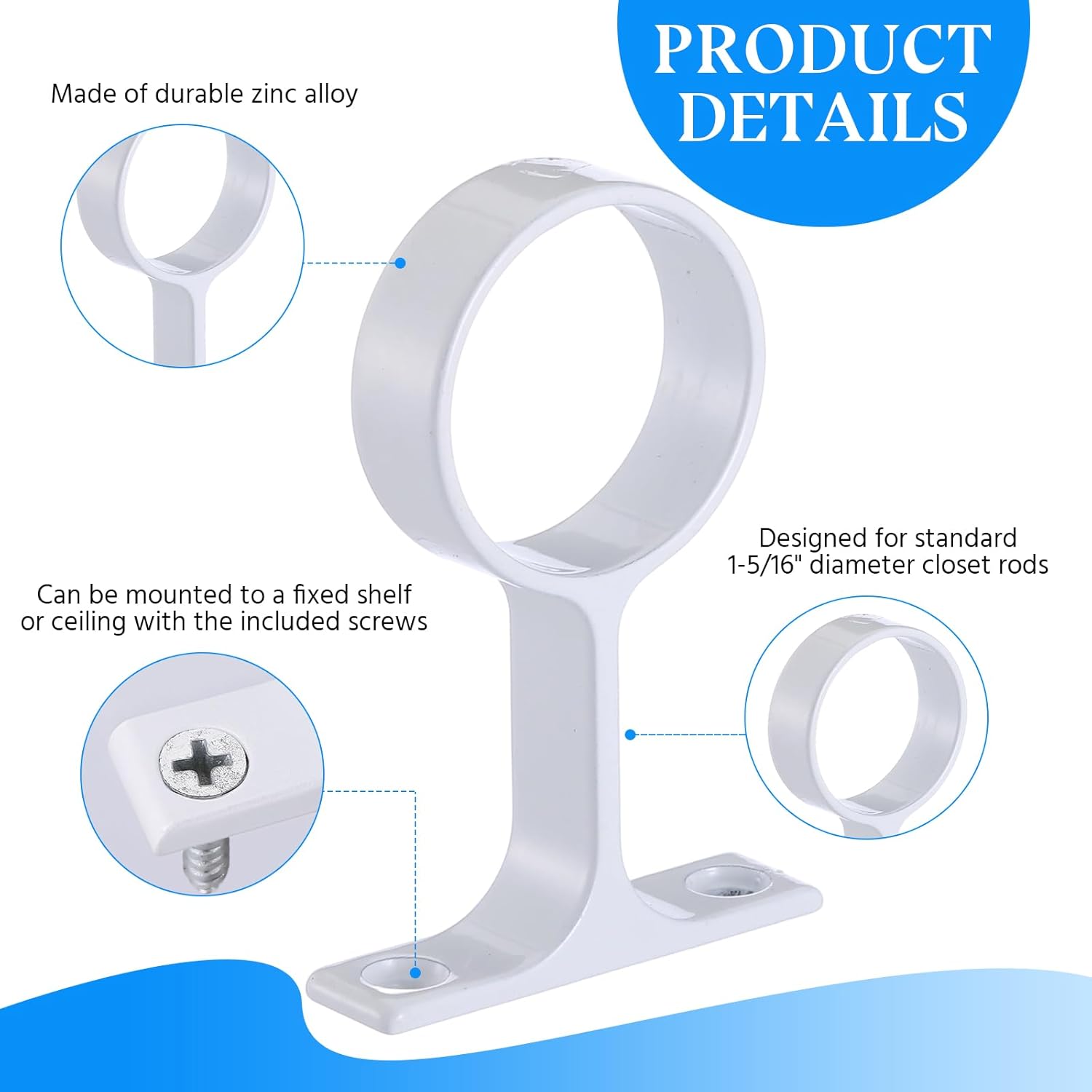| Included Components | Round Wardrobe Closet Rod Suspended Center Support, Installation Screws |